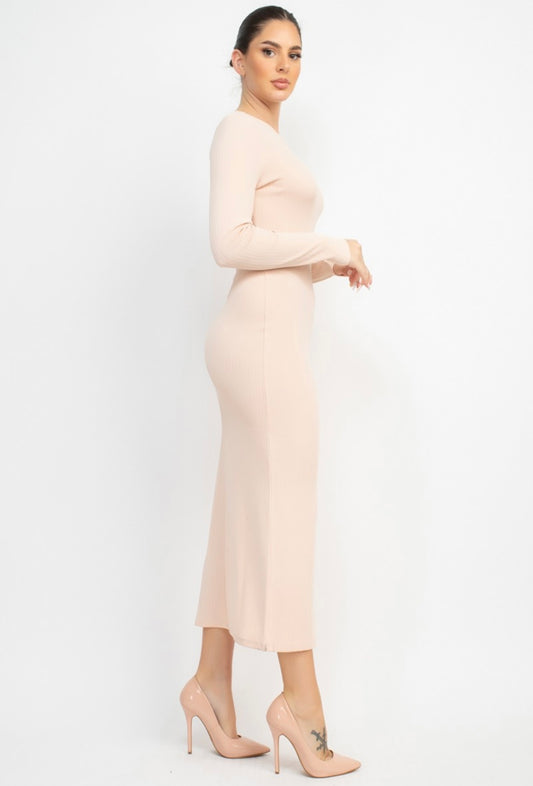 Violet Scoop Back Rib Midi Dress (Cream)