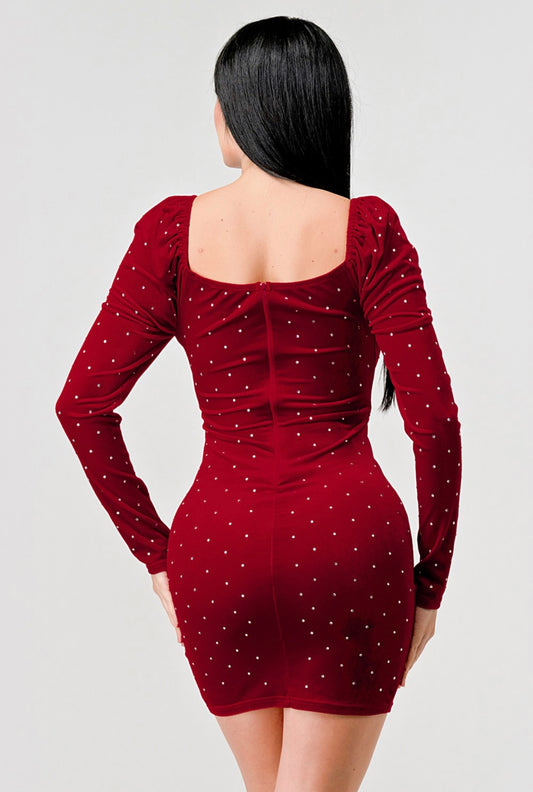 Sweetheart Rhinestone Mini Dress (Red)