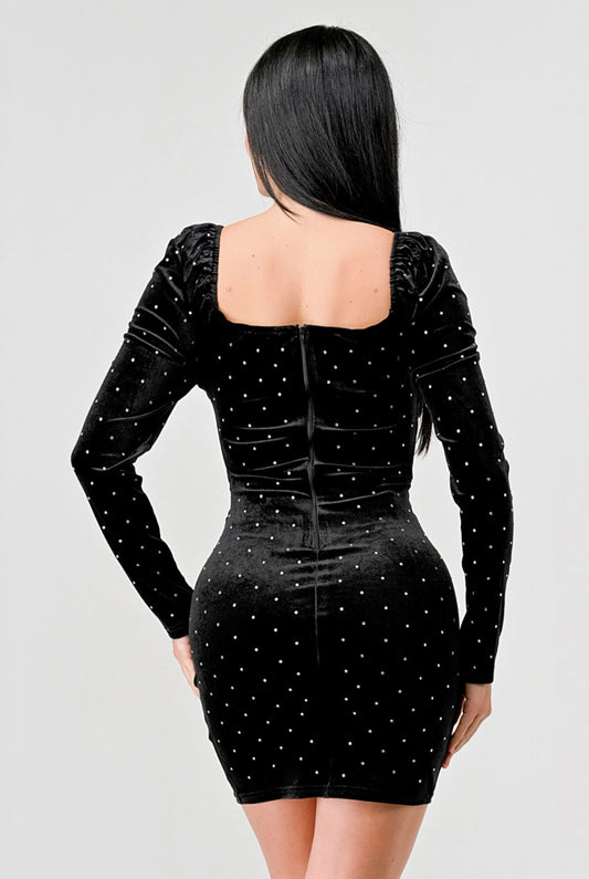 Sweetheart Rhinestone Mini Dress (Black)